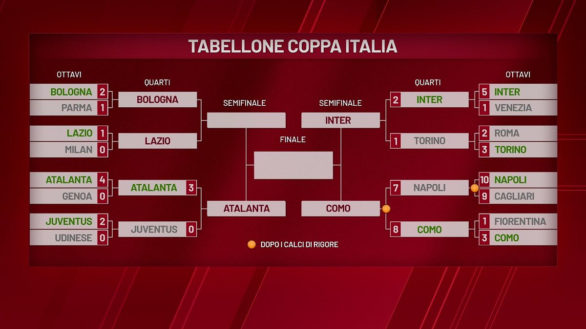 Il fischio d'inizio di Bologna-Lazio è fissato per le ore 21:00 e gli appassionati potranno seguire la partita in diretta su Italia 1. La telecronaca dell'incontro sarà curata da Massimo Callegari, affiancato dal commento tecnico di Roberto Cravero. La serata dedicata alla Coppa Italia non si esaurirà con il triplice fischio: subito dopo la gara, sempre su Italia 1, andrà in onda lo studio condotto da Monica Bertini. Insieme a lei, per analizzare le azioni salienti e i casi da moviola, ci saranno gli ospiti Emiliano Viviano, Giampaolo Pazzini e Sandro Sabatini, con il contributo tecnico dell'ex arbitro Emidio Morganti.