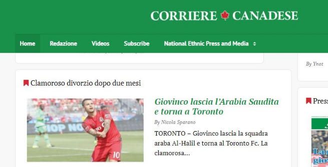 GIOVINCO TORNA A TORONTO