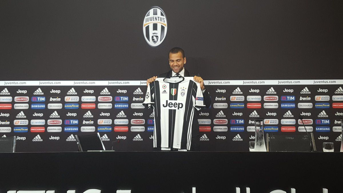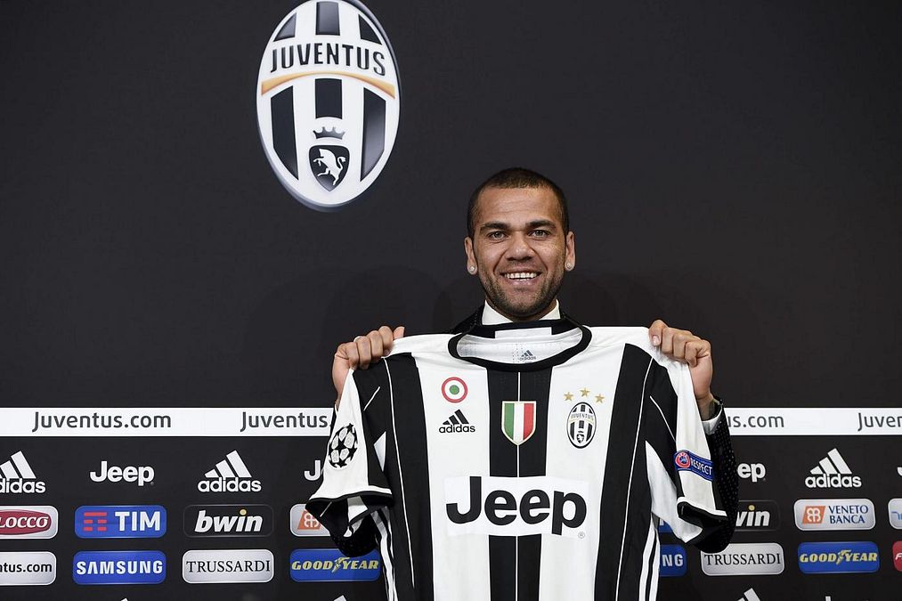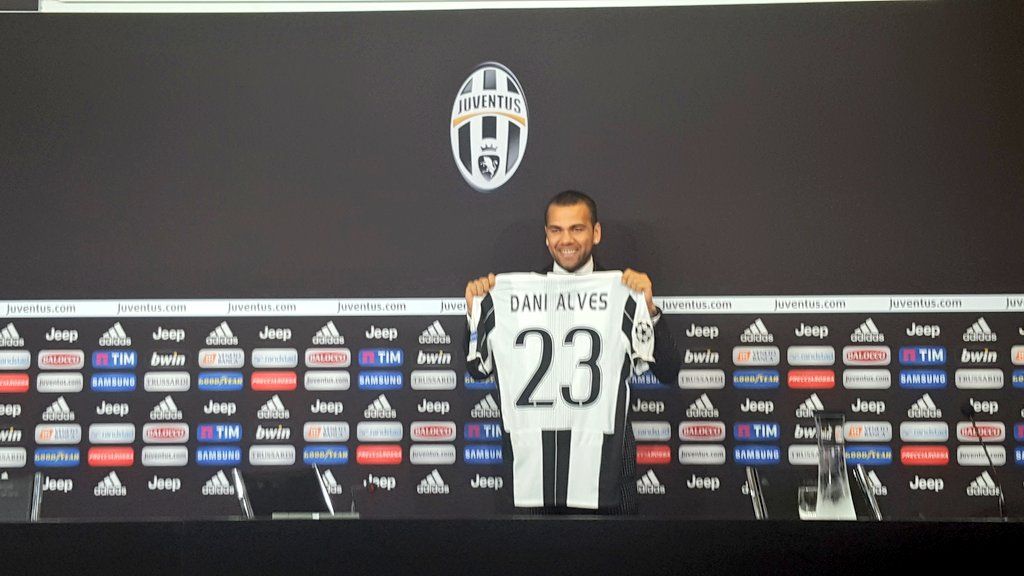 Smoking nero e pois bianchi per Dani Alves nel giorno della presentazione alla Juventus. Look che ricorda molto quello usato da Leo Messi per la premiazione del Pallone d'Oro nel 2013.