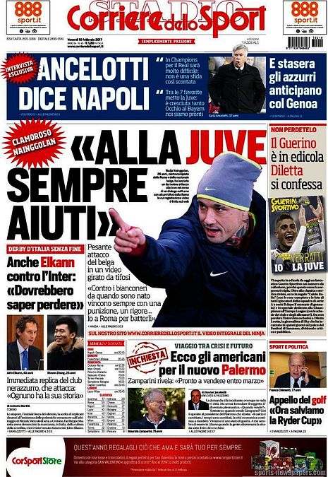 Ecco le prime pagine e gli approfondimenti sportivi dei principali quotidiani italiani e stranieri in edicola oggi, venerdì 10 febbraio 2017.