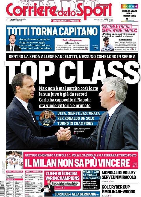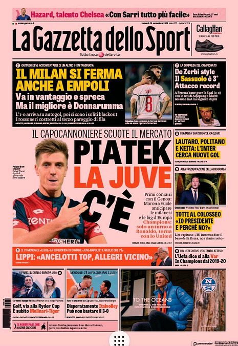 Ecco le prime pagine e gli approfondimenti sportivi dei principali quotidiani italiani e stranieri in edicola oggi, venerdì 28 settembre 2018.