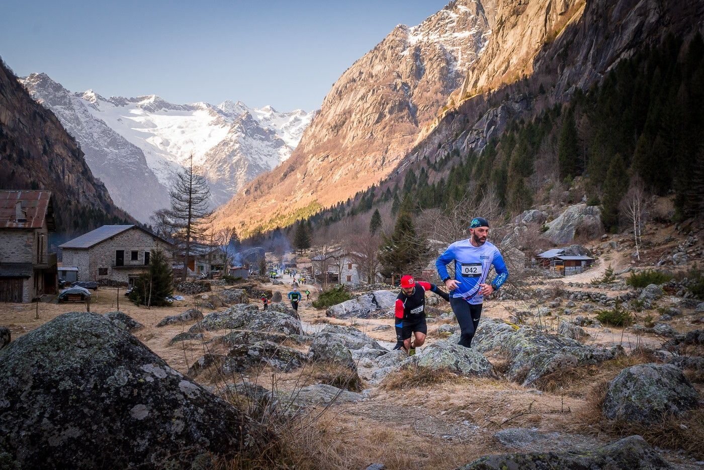 Due i percorsi allestiti e proposti da un comitato organizzatore competente ed appassionato che andremo a conoscere più avanti. La gara competitiva da undici chilometri e 300 metri di dislivello positivo (tutta corribile quindi e particolarmente intensa!) partirà dal campo sportivo di San Martino Valmasino, in pratica... l’ombelico della vallata, trovandosi proprio nel punto in cui il solco principale si dirama ad ovest nella Valle dei Bagni (che conduce nello spettacolare anfiteatro del Pizzo Badile e del Pizzo Cengalo), ad est invece nella Val di Mello, che si addentra fino ai piedi del Monte Disgrazia, che la separa dalla Valmalenco.