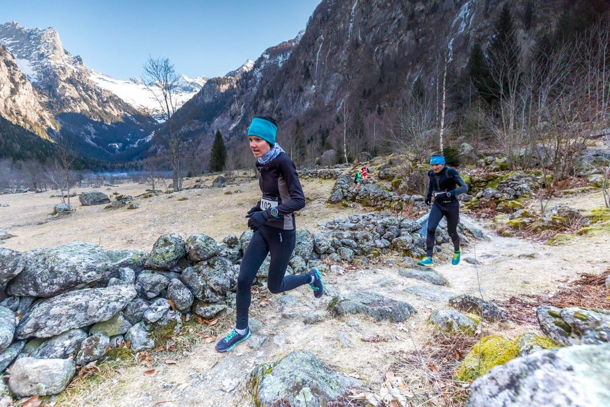Partenza a tutta (per i top runners, almeno!), allo scopo di evitare imbottigliamenti, prendendo nelle prime posizioni il nuovo sentiero che si snoda tra sassi e grotte suggestive fino alla località Bregolana. Dalla Valle dei Bagni di Masino si fa inversione di rotta, passando per la “panoramica” sovrastante l’abitato di San Martino - viaggiando a mezzacosta in direzione della Val di Mello. Raggiunto il cui imbocco, l’itinerario segue - con salita costante ma contenuta - una bellissima mulattiera che si snoda tra le zone chiave della valle: l'osteria Gatto Rosso, il laghetto, la pozza… prosaicamente denominata “bidet della contessa”, sino a giungere in località Cascina Piana, secondo (ed ultimo) giro di boa della prova. Sulla via del ritorno, un bel single track con panorama mozzafiato tra vette granitiche e suggestivi passaggi tra boschi e prati innevati regalerà ai concorrenti grandi emozioni ed il piacere della corsa in natura, ormai lanciati verso il traguardo di San Martino, dove si chiude l'itinerario ad anello.