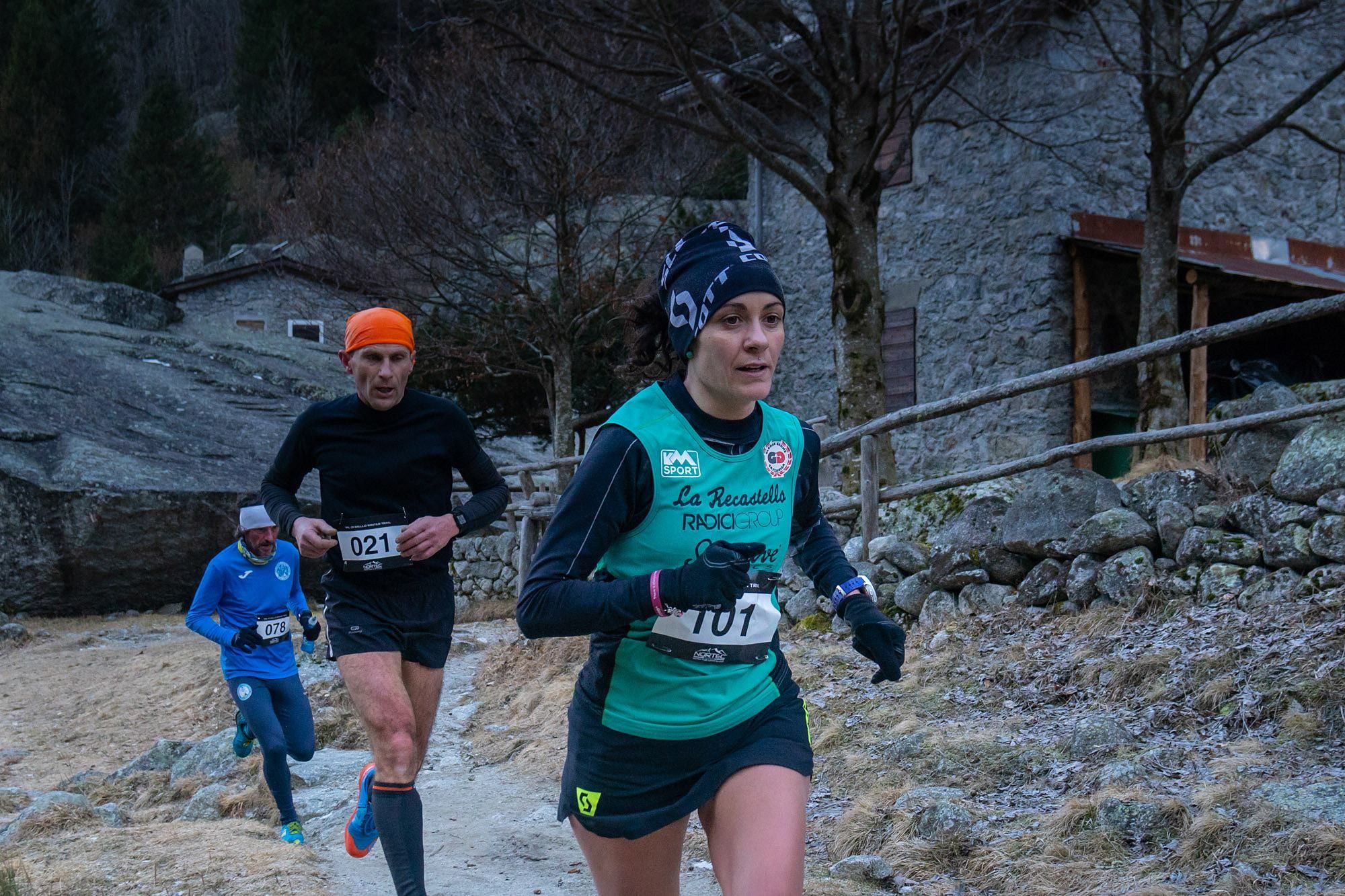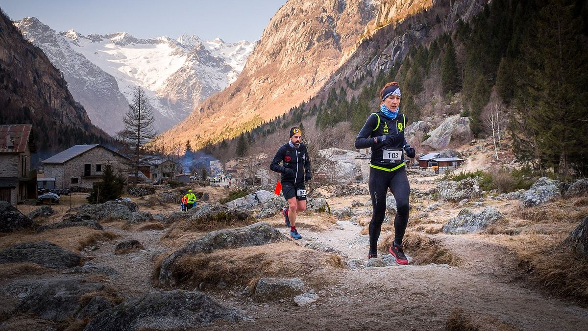 Valentino tra l’altro riuscirà addirittura a schierarsi al via ed a fare corsa di vertice. Per entrambi, oltre che con la mancanza di neve, ci sono da fare i conti con gli ultimissimi ritocchi alla “creatura”: la distanza viene ridotta di un paio di chilometri (dieci al posto di dodici) come risultato del taglio del settore più orientale del percorso, in Val di Mello. Laggiù (anzi, lassù) il pericolo ghiaccio è molto pronunciato. Non si può fare diversamente: runners ed organizzatori non sono praticamente mai sulla stessa lunghezza d’onda in questi casi. Mirko e Valentino lo sanno meglio di tutti frequentando entrambi i ”versanti”.
